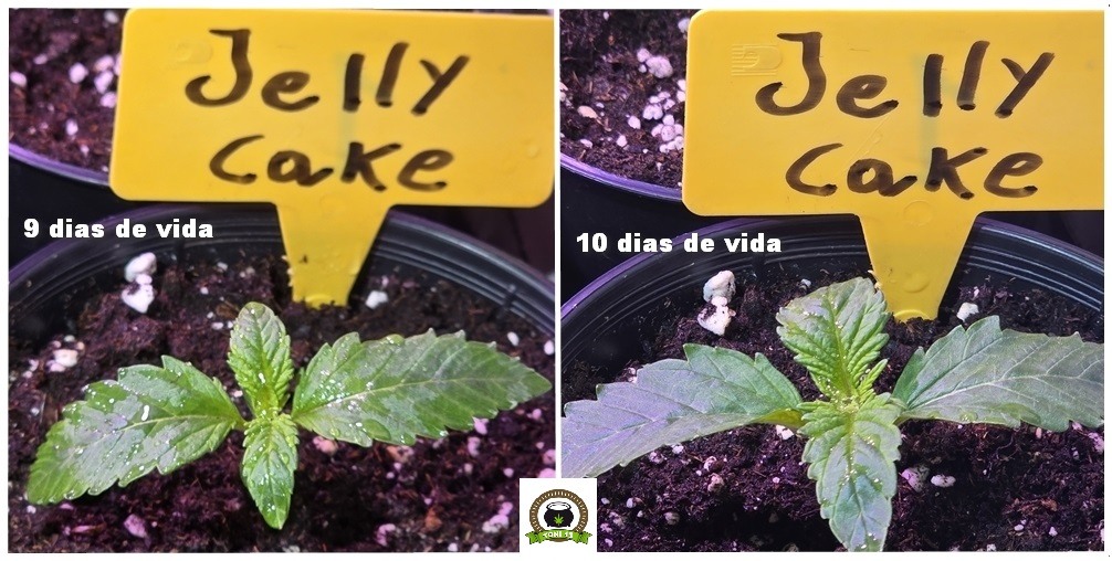 9 y 10 dias de vida: La plántula aumenta su masa foliar y aumenta su deshidratación, la planta pide ser regada todos los dias, pero ojo, no regar con 100 mililitros para que aguante 2 dias, lo importante es que «reguemos todos los dias» y asi el sistema radicular colonizara rápidanente todo el sustrato. En la fotografía de abajo vemos la evolución de un día para otro. Justo 24 horas, ha doblado su masa foliar, el ritmo de crecimiento ahora es bueno: