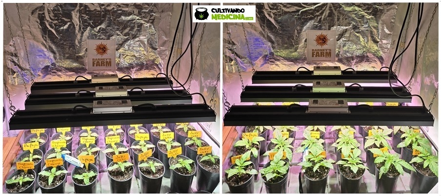 Comentar que sigo aplicando el fotoperiodo de crecimiento 18/6 y procurando dar los parametros que tenian en el marmario pequeño (25º y humedad 60%). El Led pongo al 75%.