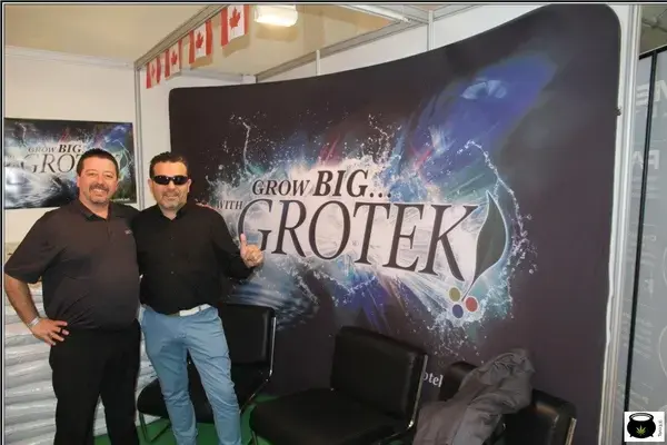 - Con la gente de Grotek en su stand. Gente honesta y trabajadora, como se puede ver en la foto, canadienses 😉 y con un inglés un poco complicado para mi nivel, jeje:
