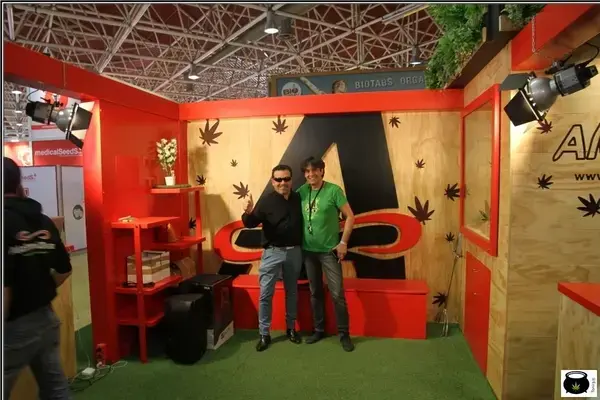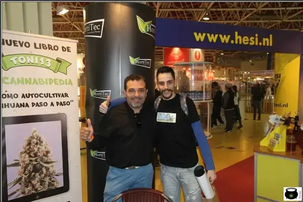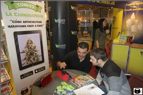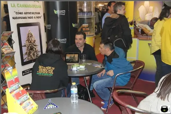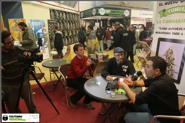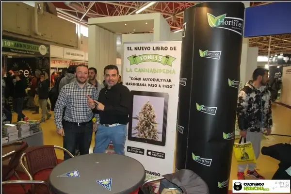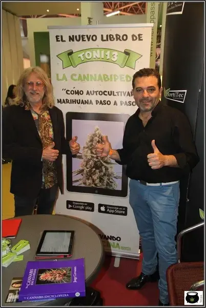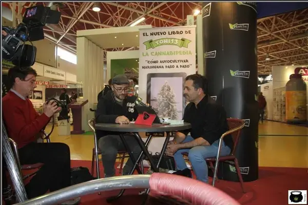 - Ya habíamos cogido fuerzas y descansado un poco. Era la hora de ir al stand del patrocinador principal de nuestro libro (Hortitec) para comenzar la presentación de mi libro «La Cannabipedia, como autocultivar marihuana paso a paso«. Mi editor lo había planificado muy bien y cada media hora acudió un medio de comunicación y, en los espacios libres, todos los amigos que me querían saludar podían hacerlo con tranquilidad
