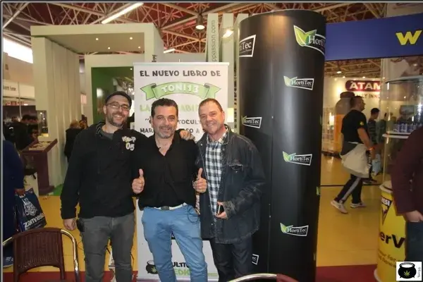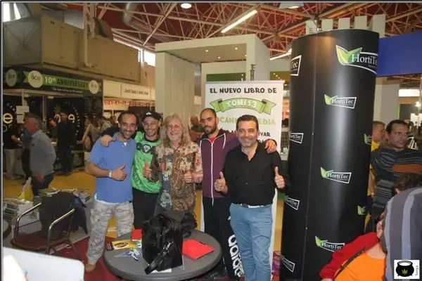 - En esta foto estoy con los amigos de Hesi, los cuales tuvieron la gentileza, junto a Hortitec, de ceder parte de su espacio para la presentación de mi libro a todos los medios que se acercaron: Fabini, Soft Secret, La MarihuanaTv, Lamarihuana.com, Revista Cáñamo, CannabisMagazine y PortalCannabis.com.