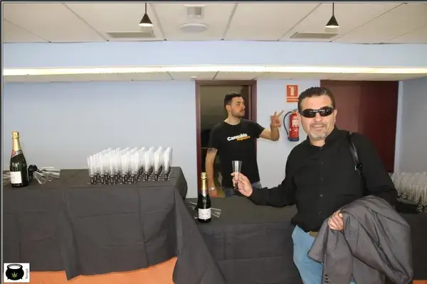 - Una parte destacada y novedad este año en la Spannabis 2015 era el nuevo espacio dedicado a las conferencias «Spannabis Cannabis World Conferences», nada más entrar te encontrabas con una sorpresa, copa de champang, la organización estaba en todo ;-). El lugar es magnifico y está bien preparado para dar conferencias, amplio y confortable. Allí me encontré con una mujer incansable y luchadora «Fernanda de la Figuera«. Esta mujer no para de revindicar la legalización de la marihuana y claro, en Spannabis no iba a dejar de hacerlo. Creo que me comento que había estado hace poco en México