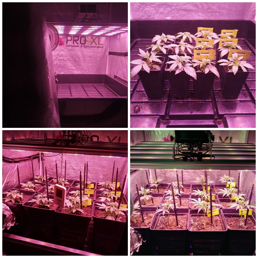 Las plantas llegan al armario en maceta de 1 litro en su 13 día desde germinacion, las plantas que llevan el cartelito son las Skywalker OG auto y las que no tienen ningún cartel las Glue Gelato auto. Son solo humedecidas de agua con enraizante en su entrada al armario. El ciclo lumínico de las plantas es el que normalmente se gasta en automáticas en interior 20/4. El plan nutricional vuelve a ser ProXL.